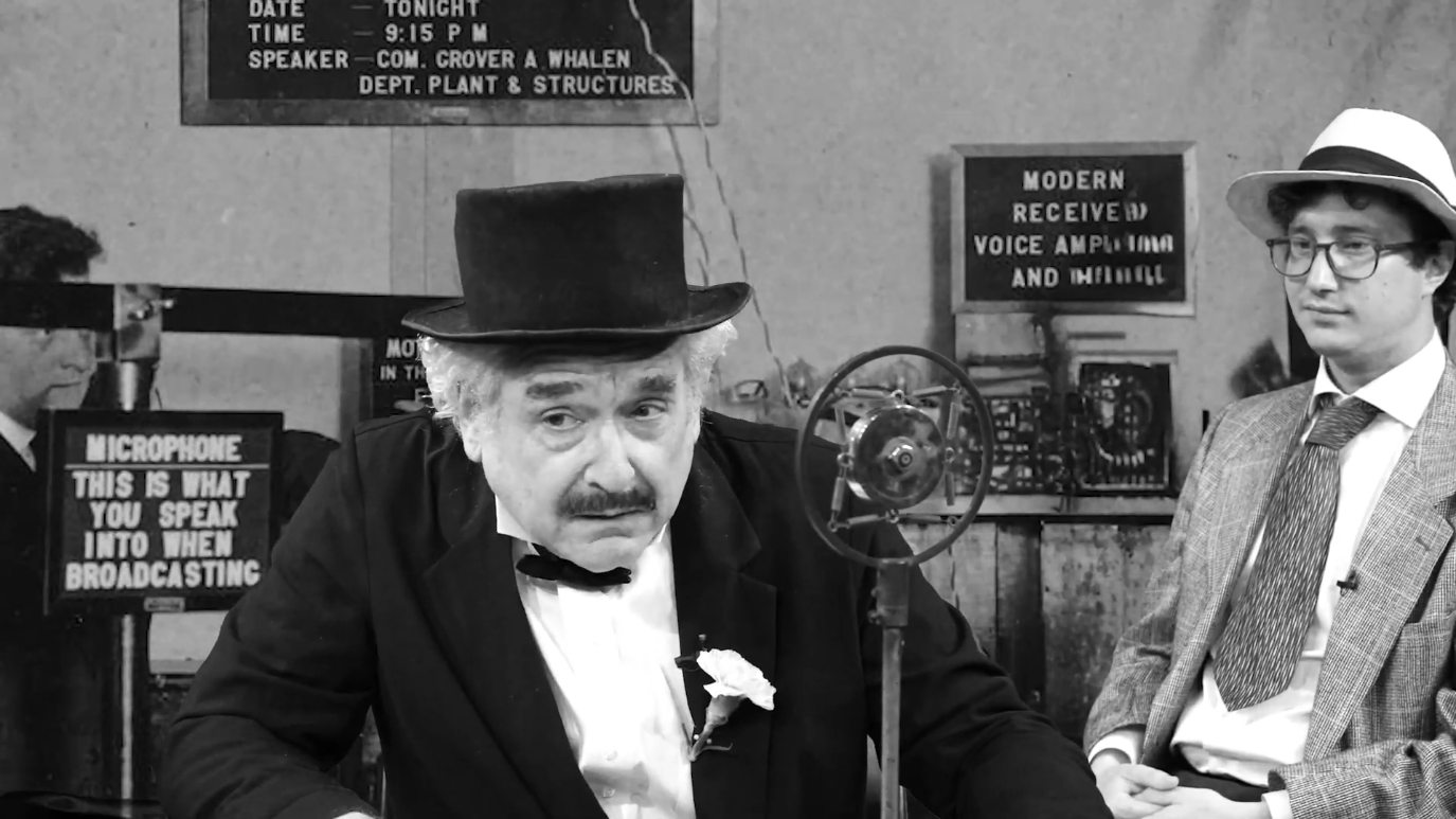 Below is a screenshot of archivist Andy Lanset playing Whalen, with Micah Loewinger as engineer Raymond Asserson, the man who would later build WNYC’s first transmitter from second-hand parts purchased in Brazil.