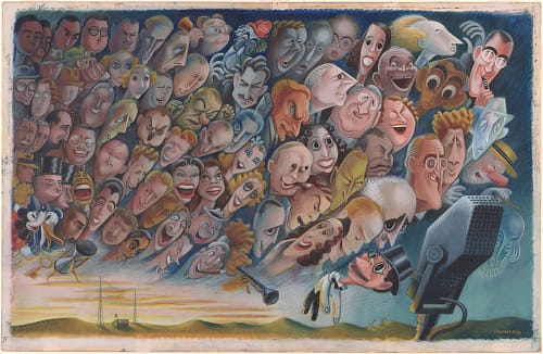 Fortune commissioned Mexican-American artist Miguel Covarrubias to bring that part of the story home without words. His work Radio Talent, spread across two pages, is the real reason why I sought out this issue. The reporting on radio and money was just a bonus.
