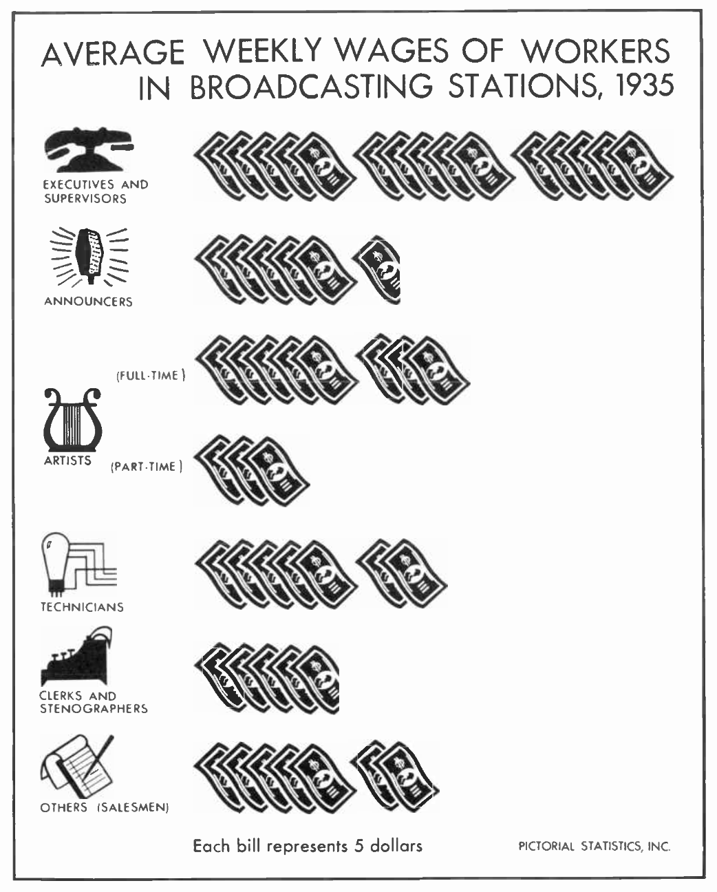 Talk about good times! Fortune estimated that US broadcasting was worth in aggregate about $140 million in 1938 money — with a net profit yearly of $28 million across the networks and 700+ commercial stations. That’s the equivalent of more than half a billion dollars today, which wasn’t bad for a new industry that emerged during a long-running depression.